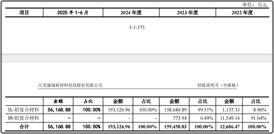 跟着破费电子限制金属用材的升级,康瑞新材金属层状复合材料材质完成由“钢-铝”到“钛-铝”的更替。2024—2025年上半年,公司金属层状复合材料带来的收入一齐来自钛-铝复合材料,其中2024年钛-铝复合材料达成的收入达19.31亿元,占主贸易务收入的65.23%,产能愚弄率达到了101.55%。但2025年上半年钛-铝复合材料的营收仅5.62亿元,占主贸易务收入的比例下落至53.17%,产能愚弄率也骤降至65.62%。