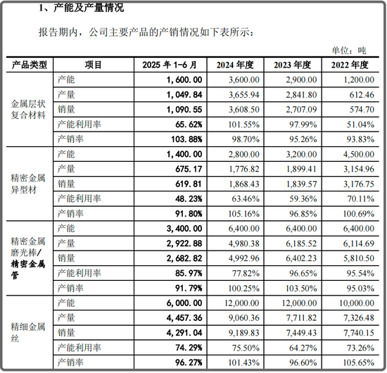 但现在康瑞新材的产能愚弄率并不高,其2025年上半年金属层状复合材料、精密金属异型材、精密金属磨光棒/精密金属管、精致金属丝的产能愚弄率差异为65.62%、48.23%、85.97%、74.29%。
